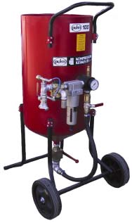 Hiekkaseosventtiilillä voit säätää hiekan määrää tarpeen mukaan. Tehokas vedenerotin estää puhallusmateriaalin kostumista ja täten vähentää laitteiden toimintahäiriöitä. Säiliön täyttö on helppoa yläosan suppilomaisuuden johdosta. Kartiomallinen pohja valuttaa hiekan tehokkaasti, joten rakeen paakkuuntuminen pohjalle estyy.