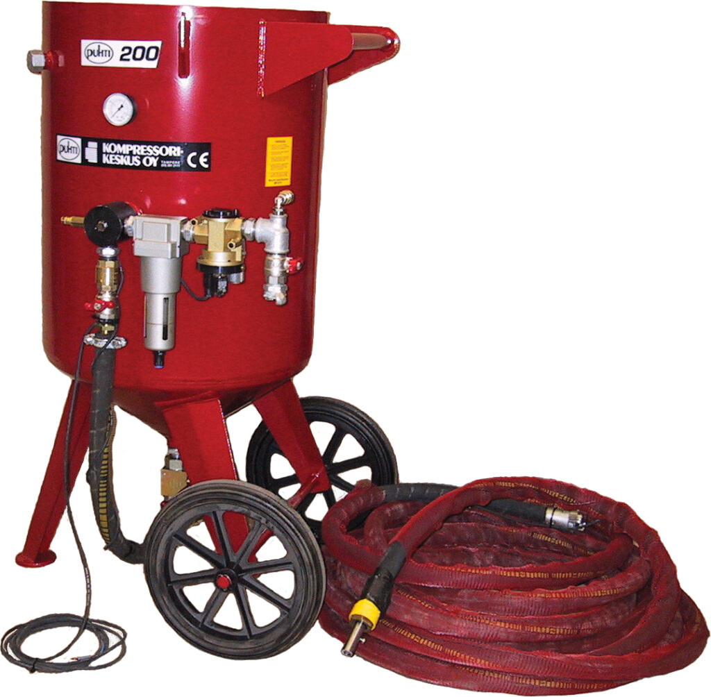PUHTI-200 painehiekkapuhaltimen helppo siirreltävyys luo käyttäjälle rajattomat mahdollisuudet eri kohteiden helppoon työstämiseen, joten vaikeidenkin paikkojen hiekkapuhaltaminen käy vaivattomasti.